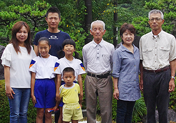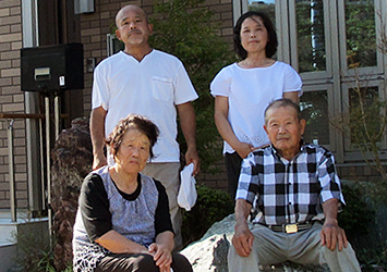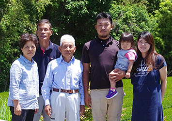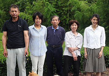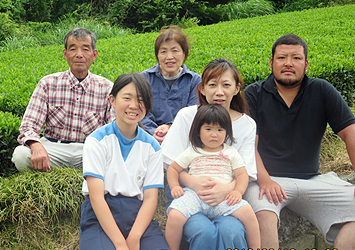 夫、私、祖父、祖母の4人で3.4haの茶園を営んでいます。夫は車が大好き、私は食べることとTVを見ることが好きです。祖父は野菜作りが上手で助かっています。祖母はグランドゴルフやカラオケグループで歌って楽しんでいます。