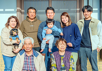 山本家はおじいちゃん、おばあちゃん、家業を継いだ長男と嫁の実咲ちゃん、可愛い孫、次男(県庁勤務)、ミニチュアダックスの小太郎(三男)、妻、自分の8人と1匹の家族です。